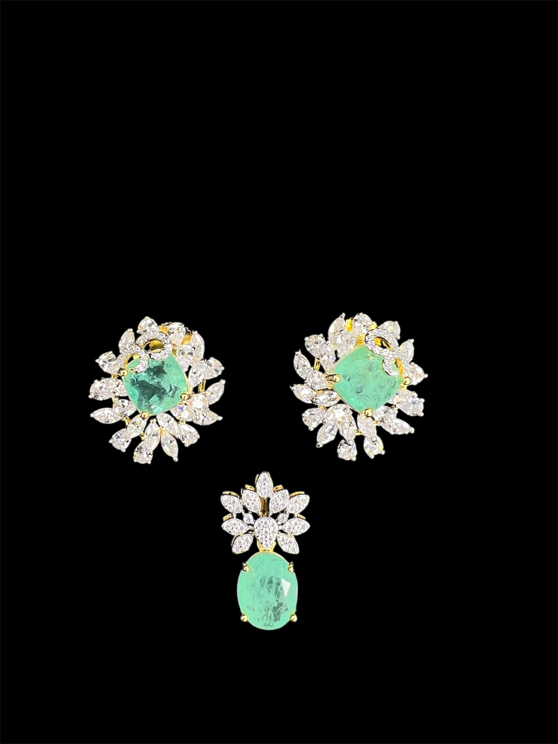 Expertly crafted for a stunning shine, our CZ pendant and studs set offers the elegance of real diamonds without the price tag. Available in green or mint green, the set includes a beautiful pendant for a perfect match every time. Add a touch of sophistication to any outfit with this versatile set.