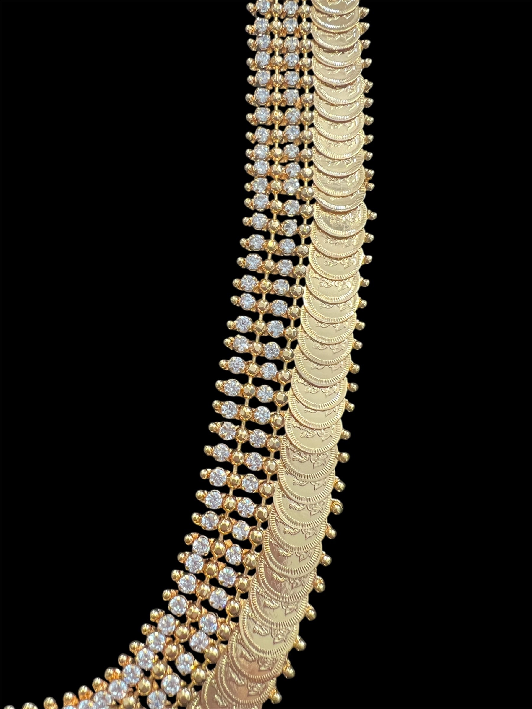 Introducing the Double line Stone Kasumala - a stunning piece that adds elegance to any outfit. With its complete gold look and double line design, this necklace is sure to make a statement. No need for earrings, let this Kasumala be the star of the show. Upgrade your style today.