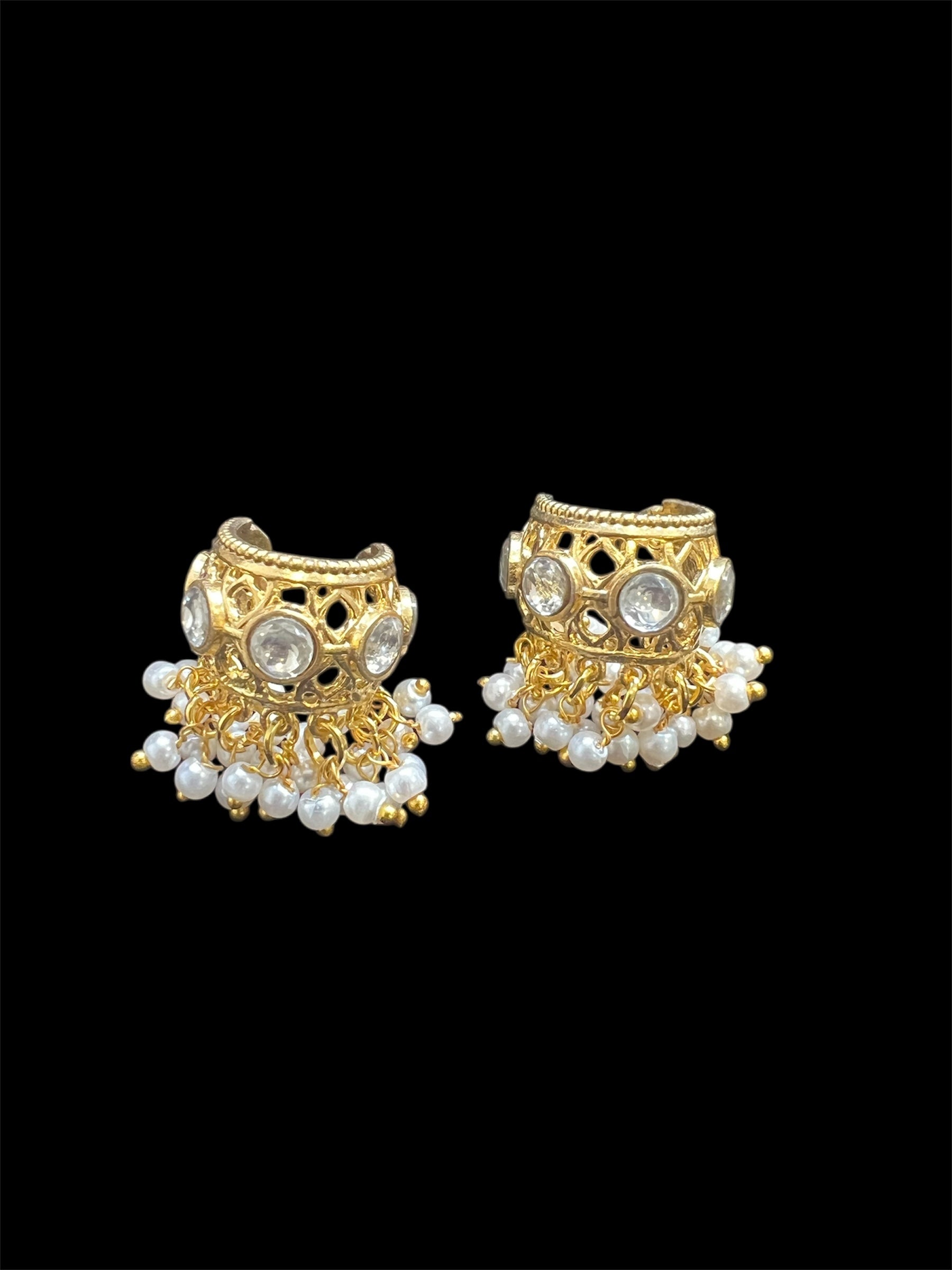 Enhance your traditional look with our Jadau Kundan Side Bugadi, featuring exquisite pearl hangings. Crafted with precision, this elegant piece is the perfect addition to your ethnic jewelry collection. Elevate your style with our Bugadi and stand out from the crowd.
