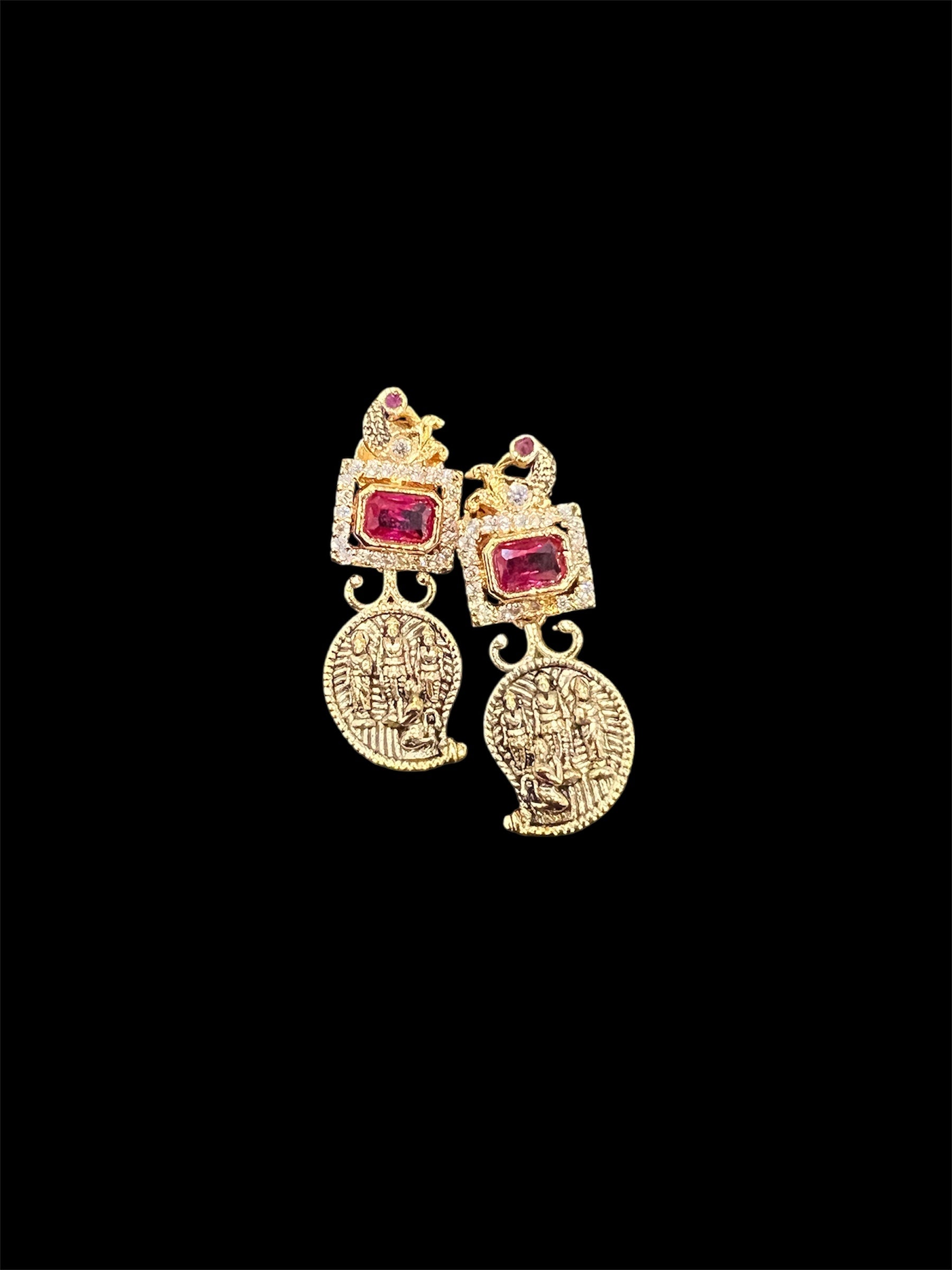 This Ramparivar mango mala is intricately crafted with beautiful kemp stones, adding a touch of elegance to any outfit. The mango design symbolizes abundance and prosperity, making it the perfect accessory for special occasions. Elevate your style with this stunning piece of jewelry.